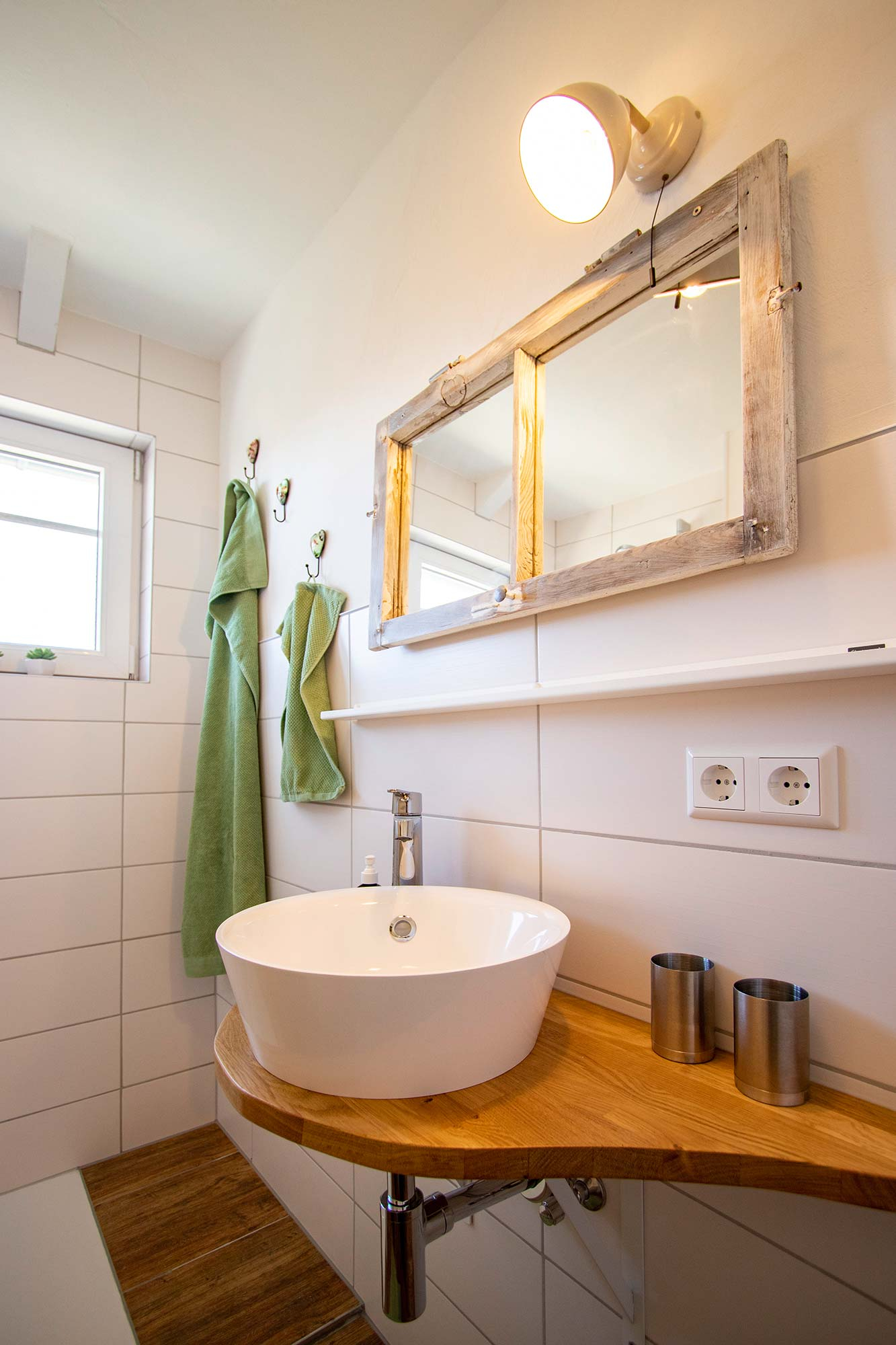 Während die Technik, die Küchen und Bäder der Ferienwohnungen neu sind (Fertigstellung im Frühsommer 2021), sind viele unserer Möbel alt – manche sehr alt. Somit sind kleinere Abnutzungs- und Gebrauchsspuren Teil des Konzepts. Helle und freundliche Räume, die Ausstattung im Landhausstil und Vintage-Elemente prägen den Charakter der großzügigen Ferienwohnung in Buchen.